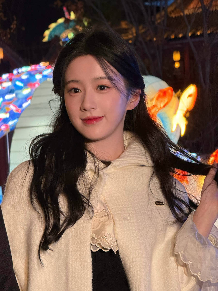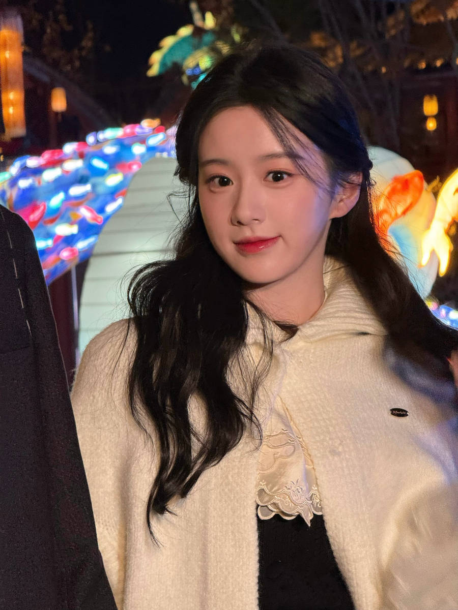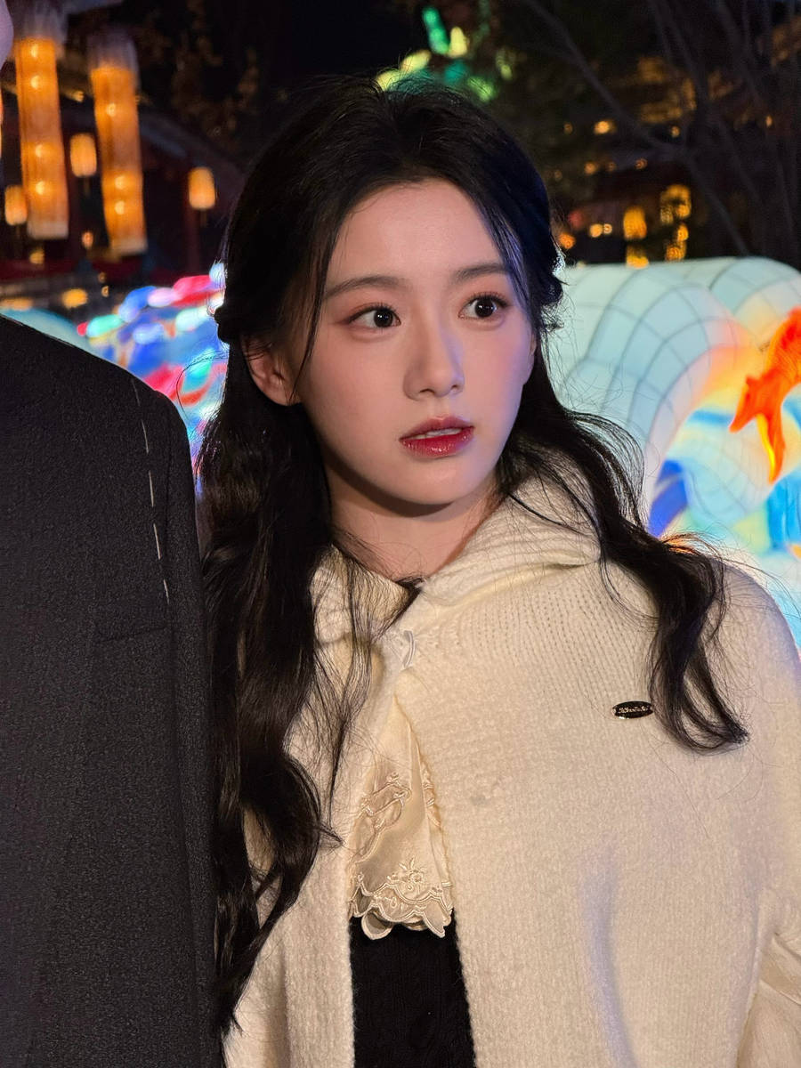 灯会的浪漫氛围,为包上恩的造型增添了满满的氛围感。夜幕降临,各式花灯次第亮起,灯光璀璨柔和,光影流转间,营造出梦幻而浪漫的意境。包上恩身着白色毛衣,漫步在灯海之中,白色的衣身在灯光的映衬下,显得格外纯净通透,与周围色彩斑斓的花灯形成鲜明对比,既凸显了她的独特气质,又让她在热闹的氛围中脱颖而出,宛如遗世独立的贵族千金,自带优雅气场。